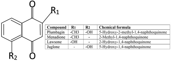 Quinones, and especially 1,4-naphthoquinone compounds, are wide-spread phenolic compounds in nature. They are products of bacterial and fungal, as well as high-plant, secondary metabolism and perform cytoprotective functions. Naphthoquinone-rich plant extracts are well-known antibacterial and anti-inflammatory preparations in folk medicine worldwide [4].