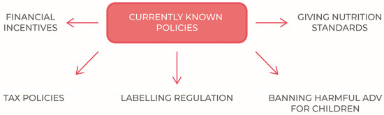 The most widespread public policies adopted to reduce childhood obesity are schematically indicated in Figure 1.