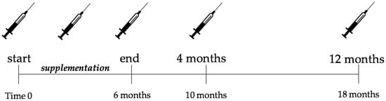 Study time line. Syringes indicate blood sampling. The results of the supplementation protocol have been presented elsewhere [,].