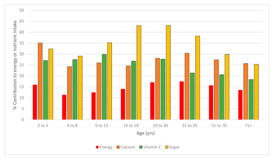 - Baird, D.L.; Syrette, J.; Hendrie, G.A.; Riley, M.D.; Bowen, J.; Noakes, M. Dairy food intake of Australian children and adolescents 2–16 years of age: 2007 Australian National Children’s Nutrition and Physical Activity Survey. Public Health Nutr. 2012, 15, 2060–2073. [Google Scholar] [CrossRef] [PubMed]
