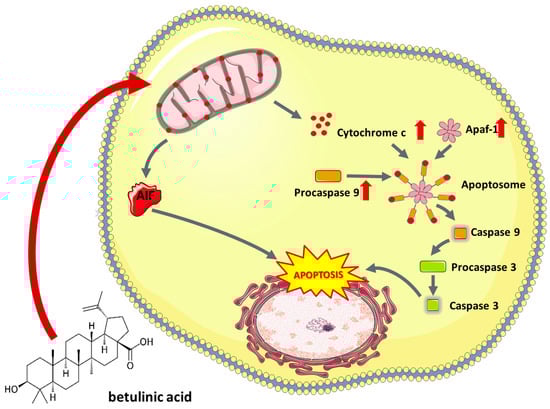 Proapoptotic activity of betulinic acid observed in cancer cells. AIF—Apoptosis Inducing Factor, Apaf-1—Apoptotic protease activating factor 1.