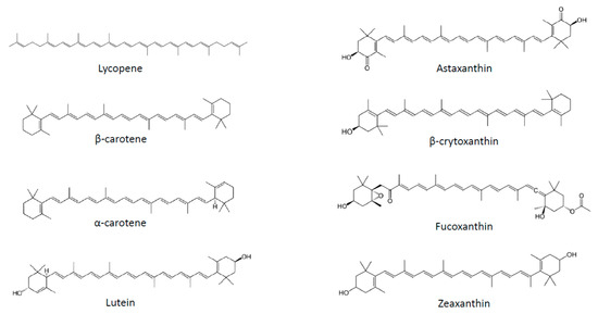 - Von Lintig, J. Colors with functions: Elucidating the biochemical and molecular basis of carotenoid metabolism. Annu. Rev. Nutr. 2010, 30, 35–56. [Google Scholar] [CrossRef]