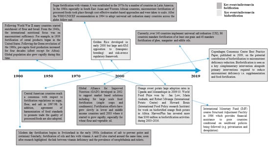 Timeline of key events in fortification, complementary foods, and biofortification Source: Adapted from [12,13,28,36,62,63].