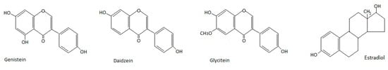 Chemical structures of isoflavones and 17-β-estradiol.