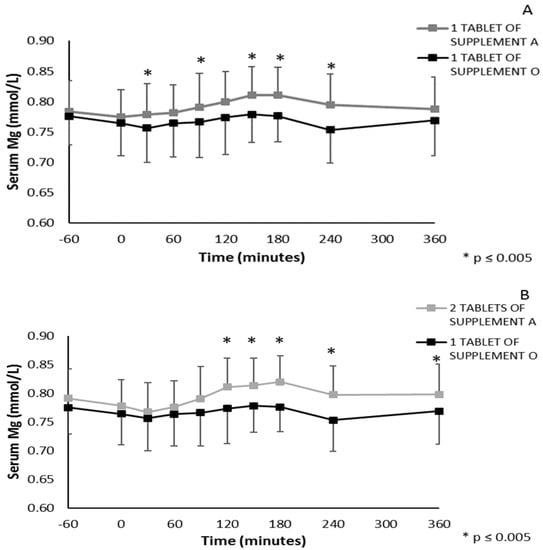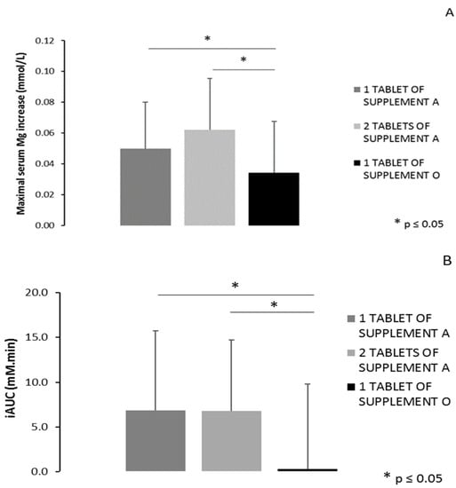 19]. This finding was also confirmed by a recent study in which both urinary excretion and serum levels of magnesium were significantly higher after single-dose administration of these two supplements in a randomized cross-over study design [