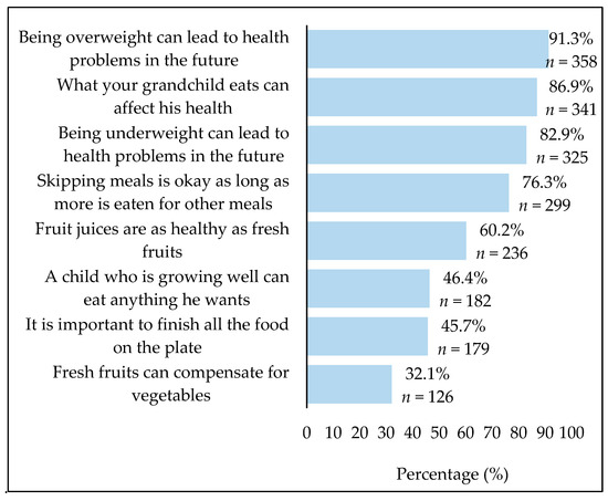 | In choosing a wide variety of food for the grandchild to eat | 76.3 | 23.7 |