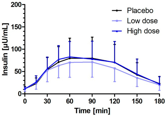 | Glucose | Placebo | Low-Dosed Milk Protein Hydrolysate | High-Dosed Milk Protein Hydrolysate | ||||