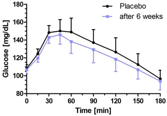 | iAUC0–180 min (mg/dL × min) | 4312.0 (2938.4–5685.6) | 3441.1 (2066.9–4815.3) | −870.9 (−1732.4–−9.5) | 0.0472 | 3685.8 (2312.6–5059.0) | −626.2 (−1480.5–228.1) | 0.1749 |