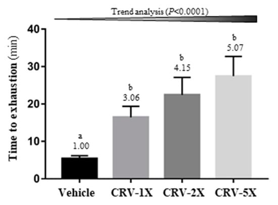 3.2. Effect of CRV Supplementation on Endurance Capacity