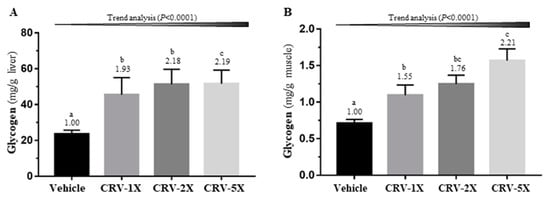 3.4. Effect of CRV Supplementation on Glycogen Content