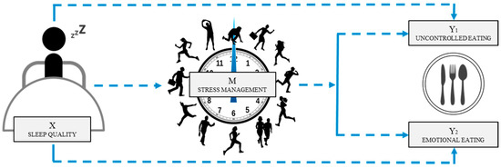 To compute the models, the total score on the PSQI was taken as the independent or predictor variable. In the first model, the dependent variable was uncontrolled eating, and in the second, emotional eating. Thus, two simple mediation models were computed, taking stress management as the mediator (M) in both cases.
