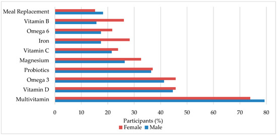 Dietary supplements commonly used in pediatric autism spectrum disorder (ASD). Male and female is percent within sex.