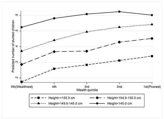 3.4. Interaction between Maternal Stature and Household Wealth and Its Effect on Stunting