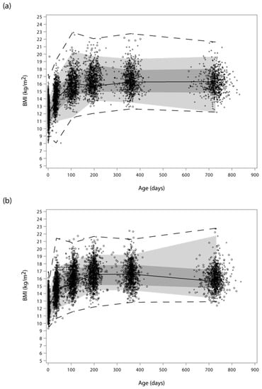 - Von Holle, A.; North, K.E.; Tao, R.; Gahagan, S. The perils of standardizing infant weight to assess weight change differences across exposure groups. Ann. Epidemiol. 2018, 515–520. [Google Scholar] [CrossRef]