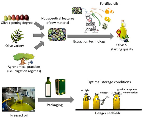 | EVOO2 production EVOO storage Fortified oils EVOO | Olive ripening Olive agronomical practices Packaging Storage conditions |