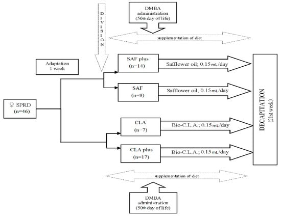 - Białek, A.; Tokarz, A.; Zagrodzki, P. Conjugated Linoleic Acids (CLA) Decrease the Breast Cancer Risk in DMBA-Treated Rats. Acta Pol. Pharm. 2015, 73, 315–327. [Google Scholar]