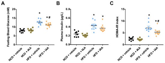 3.1. Indole-3-Acetic Acid (IAA) Ameliorates High-Fat Diet-Induced Systemic Insulin Resistance