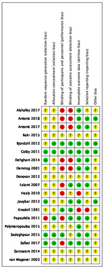 | Other bias | Unclear risk | Funding for trial: This study was supported in part by a research grant from Tehran University of Medical Sciences Notable conflicts of interest of authors: not reported |