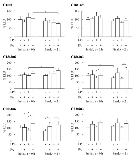 - Capó, X.; Martorell, M.; Llompart, I.; Sureda, A.; Tur, J.A.; Pons, A. Docosahexanoic acid diet supplementation attenuates the peripheral mononuclear cell inflammatory response to exercise following LPS activation. Cytokine 2014, 69, 155–164. [Google Scholar] [CrossRef]