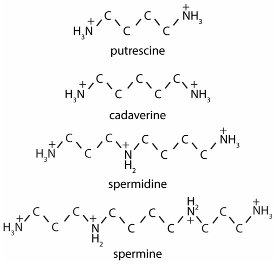 - Pegg, A.E. Functions of polyamines in mammals. J. Biol. Chem. 2016, 291, 14904–14912. [Google Scholar] [CrossRef]
