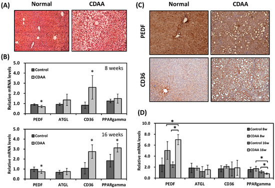 3.1. PEDF Expression Is Decreased in a Diet-Induced NAFLD Mouse Model