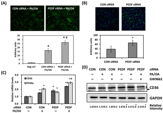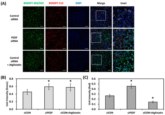 3.2. Decreased PEDF Is Associated with Increased Lipid Accumulation