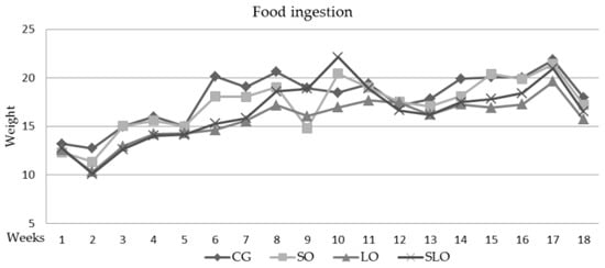 As AI and TI indicate risk of the formation of thrombi, atheromatous plaques, and plaque aggregation [29], which can lead to the development of cardiovascular diseases, our results showed that the AI and TI of the diets, especially LO (Table 2), were low when compared with other foods in the human diet, such as fish and chicken [42,43]. The data, except for CG, were similar to those reported in evaluations of the hot-pressed linseed and sesame oils, with IA and IT values below 1.0 [44,45].