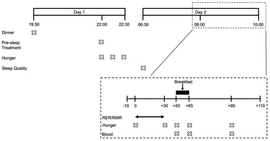 - Leyh, S.M.; Willingham, B.D.; Baur, D.A.; Panton, L.B.; Ormsbee, M.J. Pre-sleep protein in casein supplement or whole-food form has no impact on resting energy expenditure or hunger in women. Br. J. Nutr. 2018, 120, 988–994. [Google Scholar] [CrossRef]