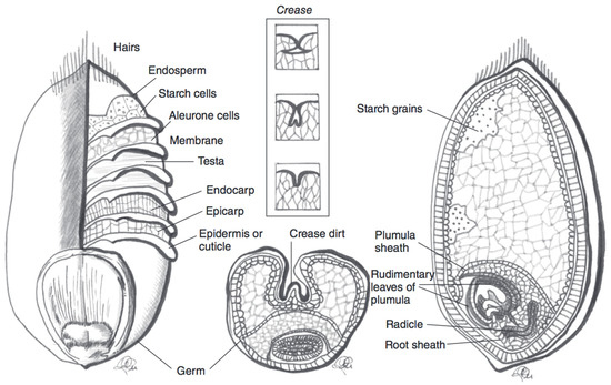 Schematic representation of a barley kernel cross-section, with component parts. Adapted from reference [27].