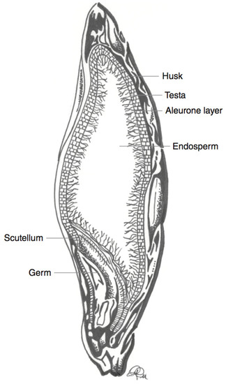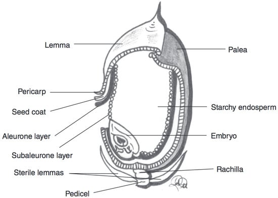 Schematic representation of a rice kernel cross-section, with component parts. Adapted from reference [27].