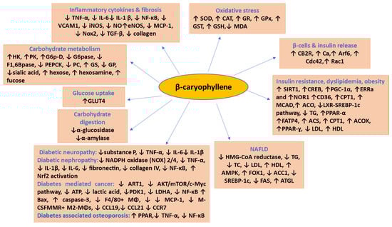 The molecular targets modulated by β-caryophyllene in diabetes and its complications.