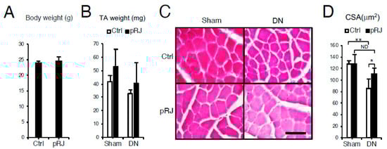 3.1. pRJ Attenuates Denervation-Induced Skeletal Muscle Atrophy