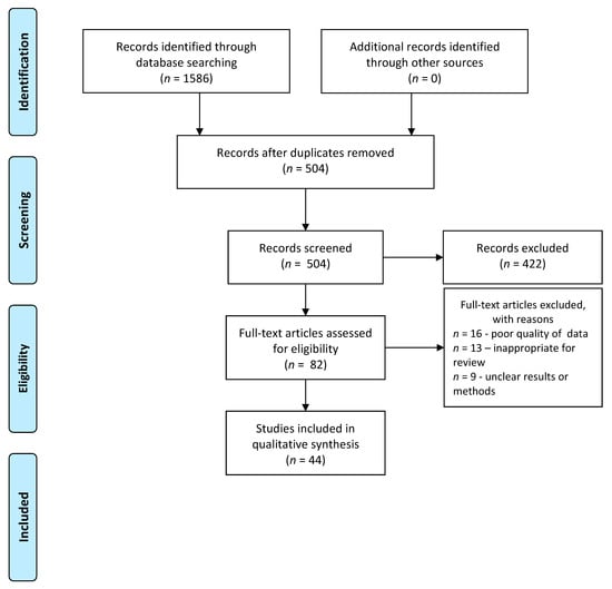 A total of 504 records were screened after the implementation of inclusion criteria. After assessment for eligibility, 47 studies were included in the qualitative synthesis.