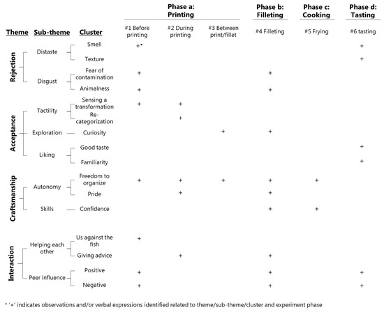 Data are presented according to the ATA frame (Figure 4) by including relevant examples from the data set to support the ATA. Abbreviations applied in the analysis: Obs: observation, ic: informal conversation. Phases of the exercise: #1 = Before printing; #2 = During printing; #3 = Between printing and filleting; #4 = During filleting; #5 = Frying; #6 = Tasting.