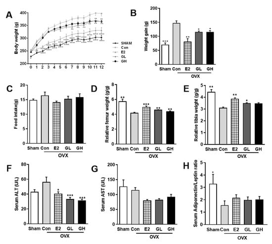 | Weight (g) | Sham | Con | E2 | GL | GH |