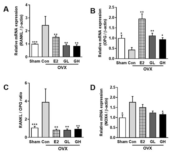 - Kim, J.S.; Lee, H.; Nirmala, F.S.; Jung, C.H.; Kim, M.J.; Jang, Y.J.; Ha, T.Y.; Ahn, J. Dihydrodaidzein and 6-hydroxydaidzein mediate the fermentation-induced increase of antiosteoporotic effect of soybeans in ovariectomized mice. FASEB J. 2018, 33, 3252–3263. [Google Scholar] [CrossRef]