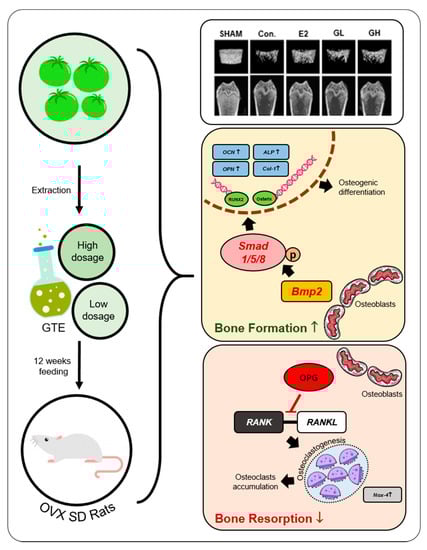 Nirmala, F.S.; Lee, H.; Kim, J.-S.; Ha, T.; Jung, C.H.; Ahn, J. Green Tomato Extract Prevents Bone Loss in Ovariectomized Rats, a Model of Osteoporosis. Nutrients 2020, 12, 3210. https://doi.org/10.3390/nu12103210