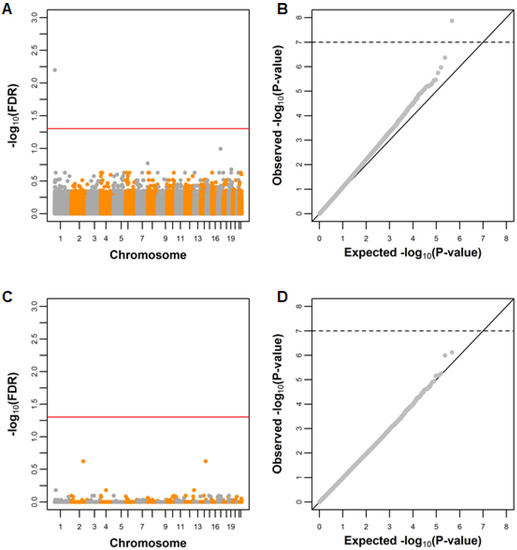 - Benjamini, Y.; Hochberg, Y. Controlling the False Discovery Rate: A Practical and Powerful Approach to Multiple Testing. J. R. Stat. Soc. Ser. B 1995, 57, 289–300. [Google Scholar]