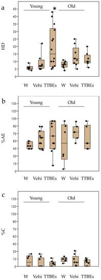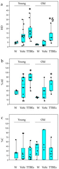 3.4. Dietary Supplementation with TTBEs: Behavioral Scores
