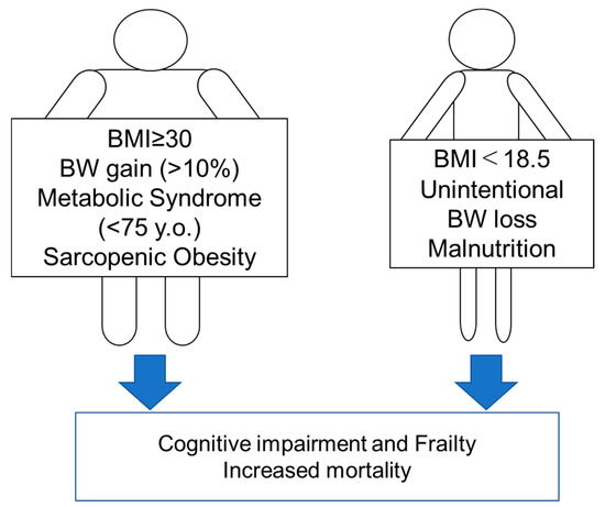 - Nam, G.E.; Park, Y.G.; Han, K.; Kim, M.K.; Koh, E.S.; Kim, E.S.; Lee, M.K.; Kim, B.; Hong, O.K.; Kwon, H.S. BMI, weight change, and dementia risk in patients with new-onset type 2 diabetes: A nationwide cohort study. Diabetes Care 2019, 42, 1217–1224. [Google Scholar] [CrossRef]