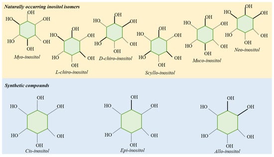 Inositols are 6-carbon sugar alcohols. There are 9 INS isomers (Figure 1) differing one from the other on the basis of the spatial orientation of the hydroxyl groups.