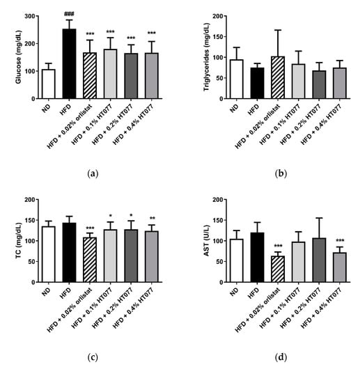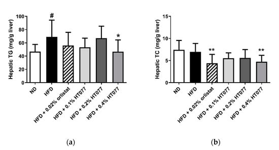 3.5. Effects of HT077on Hepatic Triglyceride and Total Cholesterol Contents