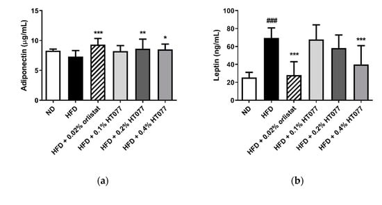 3.4. Effects of HT077on Serum Adipokine Concentrations