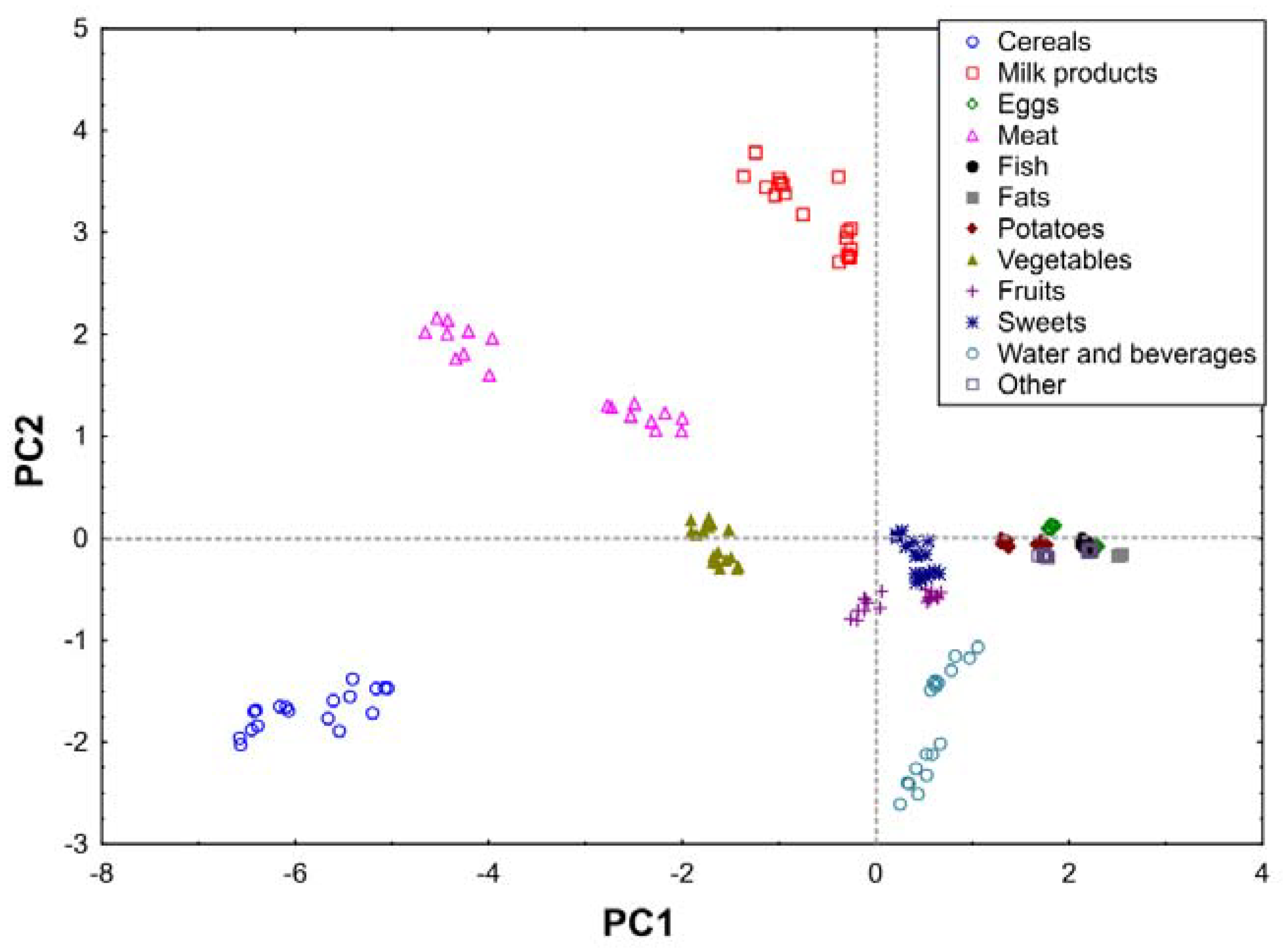 Chicago/Turabian StyleKoch, Wojciech, Marcin Czop, Agnieszka Nawrocka, and Dariusz Wiącek. 2020. "Contribution of Major Groups of Food Products to the Daily Intake of Selected Elements—Results from Analytical Determinations Supported by Chemometric Analysis" Nutrients 12, no. 11: 3412. https://doi.org/10.3390/nu12113412