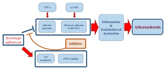 Schematic diagram of the effects of Securiniga suffruticosa in vascular inflammation.