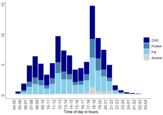 3.3. Diurnal Variation in Intake of Energy and Macronutrients