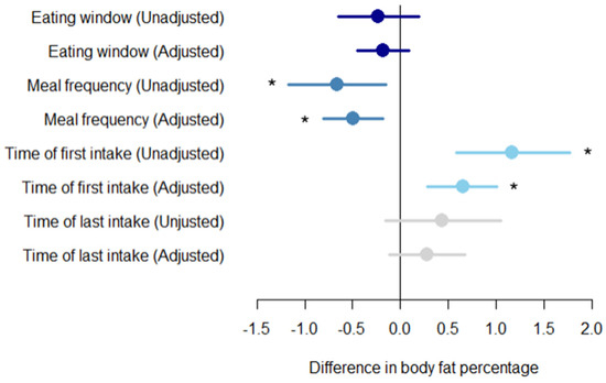 3.4. Relationship between Daily Eating Patterns and Body Fat Percentage