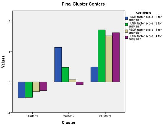 Illustration of four factors in the three profiles defined in the cluster analysis. REGR: Regression.