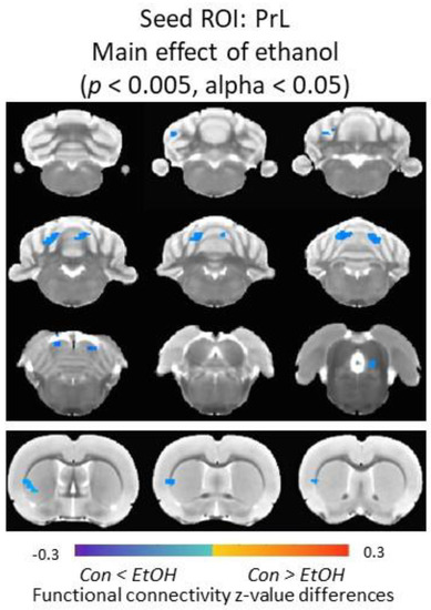 3.6. Functional Connectivity of the Prelimbic Cortex and Cerebellum Was Increased in Ethanol-Exposed Male Rats