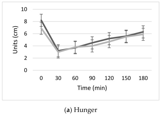 - Raben, A.; Blundell, J.E.; Astrup, A. Reproducibility, power and validity of visual analogue scales in assessment of appetite sensations in single test meal studies. Int. J. Obes. Relat. Metab. Disord. 2000, 24, 38–48. [Google Scholar]